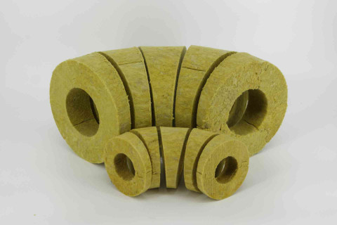 Процесс изготовления теплоизоляционных цилиндров состоит в выкраивании нужных форм из массива плиты теплоизоляционной. Каменная вата на основе базальтовых пород скрепляется низкофенольными связующими элементами (синтетическими смолами) с содержанием гидрофобизирующих добавок, которые существенно увеличивают свойства отталкивать воду, благодаря чему минеральная вата не намокает и не теряет своих изоляционных свойств.